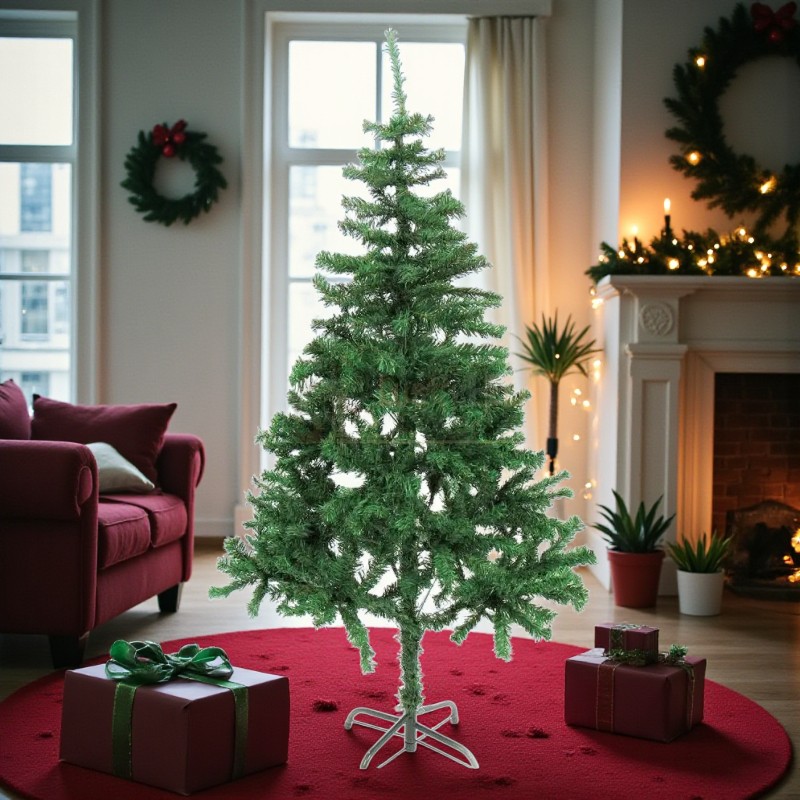 Brad artificial decorativ, înalt și elegant, ideal pentru a crea o atmosferă festivă în orice locuință. Realizat din materiale durabile, cu ramuri bogate și rezistente, acesta oferă un aspect natural și permite decorarea ușoară cu globuri, luminițe și alte ornamente. Include suport stabil.